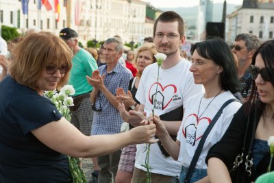Skupina dobrovoľníkov a dobrovoľníčok v rámci platformy Nie v našom meste! vytrvalo pomáha a rieši spoločensky vážne situácie v Banskej Bystrici a sprostredkovane aj v BB kraji. Monitorujú procesy samosprávy, upozorňujú na možnú korupciu, nedodržiavanie občianskych práv participácie, bojujú proti extrémizmu, za dodržiavanie ľudských práv a bojujú za slušnú krajinu a mesto. Obetovali desiatky hodín práce, aby mesto rešpektovalo občanov ako relevantných partnerov v rozhodovaní o verejných priestoroch (Mestský park, Protipovodňová ochrana, Vojenská prehliadka SNP), aby Banská Bystrica nebola mestom, ktoré toleruje extrémizmus (Čítanie proti násiliu - Mazurek, bilboardy a kampaň Nie nenávisti), aby Slovensko nebolo korupčnou krajinou (protesty Za slušné Slovensko), aby ľudia nezabúdali na to, čo spôsobil fašizmus (Oči pre plač, konferencia Human forum, dišputy). Je to časovo, ale hlavne psychicky náročná práca, ktorej venujú svoj voľný čas. Bez nich by nebolo možné v meste urobiť taký posun vo vnímaní občianskych a ľudských práv u verejnosti. Sú tu pre obyvateľov mesta, širokú verejnosť, ktorá sa nie vždy dostane k informáciám a príležitostiam sa vyjadriť. Dobrovoľníci a dobrovoľníčky okolo platformy „Nie v našom meste“. Viac sa dozviete vo video nominácii Martiny Strmeňovej z Centra komunitného organizovania a zároveň koordinátorky platformy Nie v našom meste!